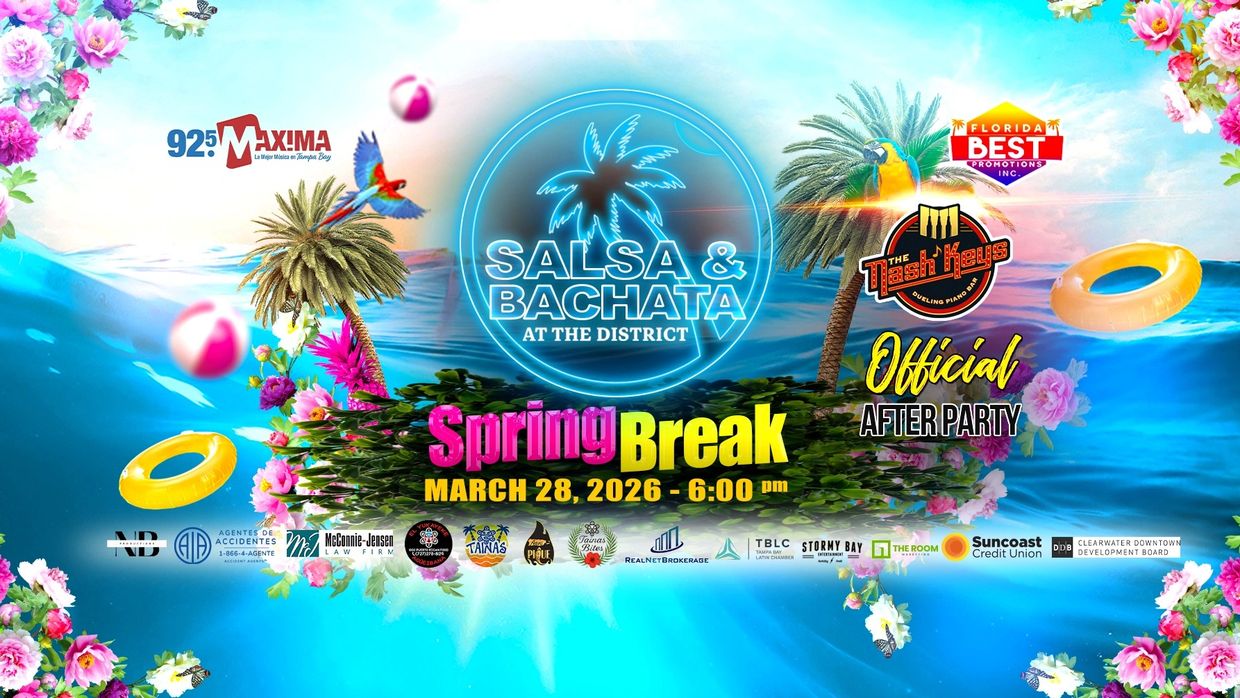 Experience the energy, rhythm, and vibrant atmosphere of Salsa at The District – Spring Break Edition in the heart of Downtown Clearwater.